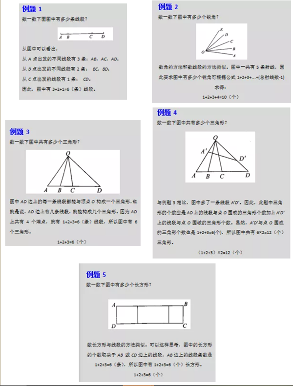 1、认知要明确:任何复杂的几何图形,都是由线段、角、三角形、长方形等这些基本图形重叠交错组合而成;
